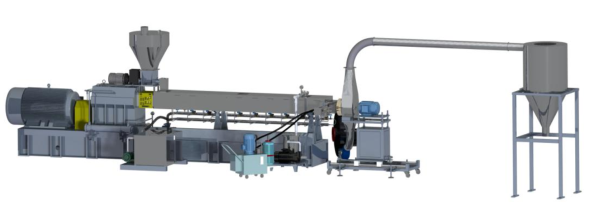 該系統通常包括模頭,切粒小車,旋風分離、振動輸送等。